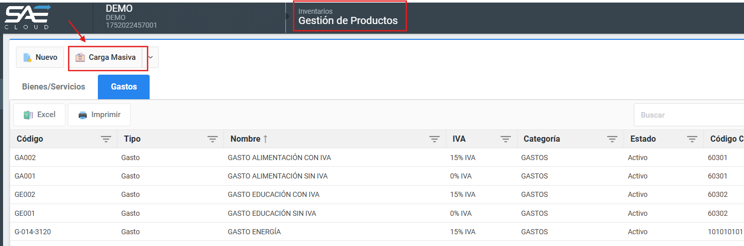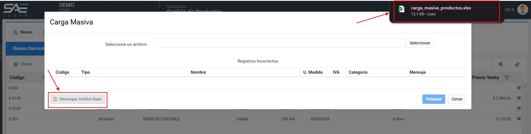 ¿Cómo cargar de forma masiva Productos de Inventario?