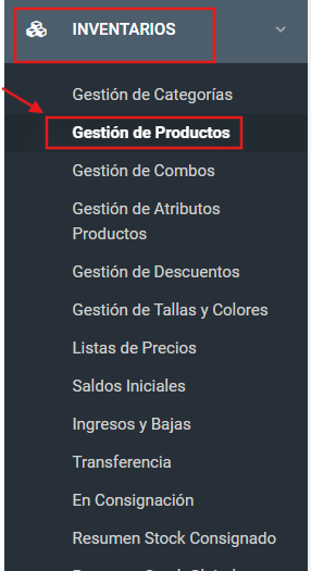 Paso 1: Ingresar al módulo Inventarios-> Gestión de Productos