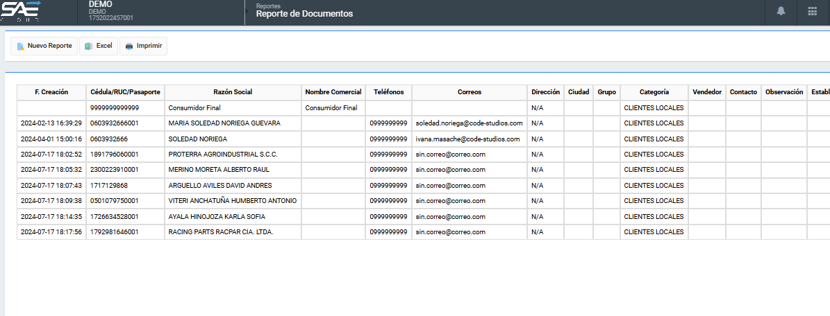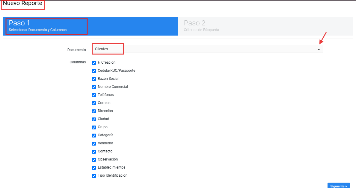 Paso 2: Dar clic en el botón Nuevo Reporte y seleccionar el tipo de documento como: