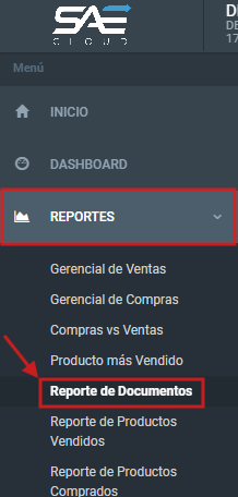 Paso 1: Ingresamos en el menú Reportes -> Reportes de Documentos