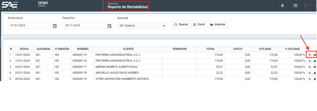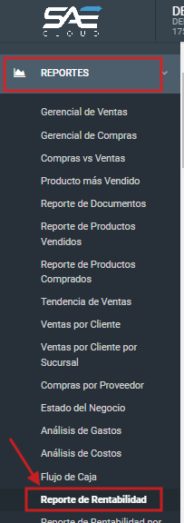Paso 1: Ingresamos en el menú Reportes -> Reporte de Rentabilidad